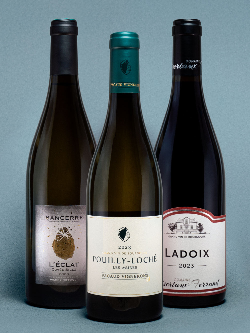 Deze trio brengt L’Éclat (Sauvignon Blanc), Pouilly-Loché (Chardonnay) en Ladoix (Pinot Noir) samen – drie verschillende druiven, drie fruitexpressies, prachtig in balans.